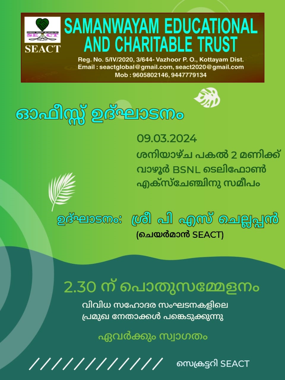 അടിസ്ഥാന ജനവിഭാഗങ്ങളുടെ ഉന്നമനം ലക്ഷ്യമാക്കി പ്രവർത്തിക്കുന്ന സമന്വയം എഡ്യൂക്കേഷൻ ആൻഡ് ചാരിറ്റബിൾ ട്രസ്റ്റിനും ഇതിനു പിന്നിൽ പ്രവർത്തിക്കുന്ന എല്ലാവര്ക്കും എൻ്റെ എല്ലാവിധ ആശംസകളും നേരുന്നു.